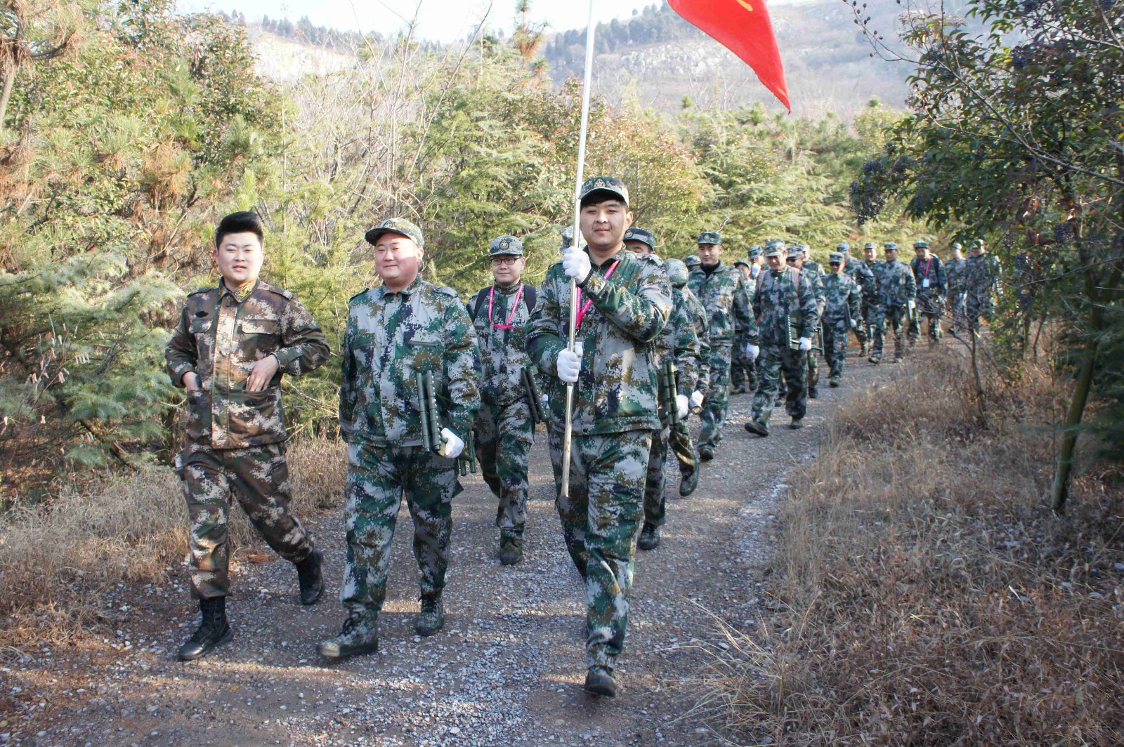 本次軍訓(xùn)拓展活動共分為兩個批次開展,眾人眾拓展訓(xùn)練營配備專業(yè)教練為參訓(xùn)人員安排了包括團隊組建、軍事訓(xùn)練、意志重塑、卓越執(zhí)行、信任責(zé)任、團隊協(xié)作、團隊競技、總結(jié)沉淀與升華等多個訓(xùn)練環(huán)節(jié),涵蓋隊列訓(xùn)練、內(nèi)務(wù)訓(xùn)練、拓展訓(xùn)練、分享總結(jié)等多個訓(xùn)練項目,并將訓(xùn)練項目與現(xiàn)實生活充分融合,逐一進行項目指導(dǎo)。公司董事長、總經(jīng)理趙峰及高管層也作為普通一員,同參訓(xùn)學(xué)員同吃、同住,并一同參加了訓(xùn)練。本期軍事拓展訓(xùn)練中,全體參訓(xùn)人員一起完成了真人CS、電網(wǎng)、空單、激情動力圈、畢業(yè)墻,一個又一個極具挑戰(zhàn)性的項目,期間,為紀念紅軍長征勝利70周年,還進行了一次徒步10余公里山路的重走長征路活動。這些活動鍛煉了大家的集體向心力和凝聚力。