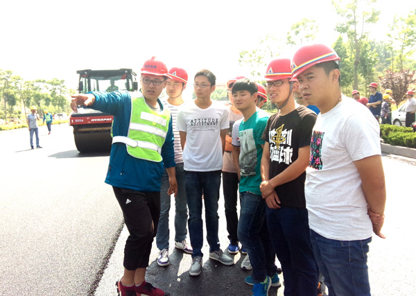 我公司作為棗莊學(xué)院教學(xué)實(shí)踐基地,承擔(dān)了棗莊學(xué)院相關(guān)專業(yè)教學(xué)實(shí)踐活動(dòng)相關(guān)職能。為在校生提供實(shí)地教學(xué)觀摩和講解,是我公司的一項(xiàng)重要社會(huì)職能。本次赴我公司學(xué)習(xí)觀摩的學(xué)生,均為棗莊學(xué)院城市與建筑學(xué)院2013級(jí)土木工程專業(yè)在校生。師生一行先后參觀了遠(yuǎn)建路橋分公司路面材料生產(chǎn)現(xiàn)場(chǎng)和路橋一分公司匯泉路項(xiàng)目瀝青攤鋪現(xiàn)場(chǎng)。