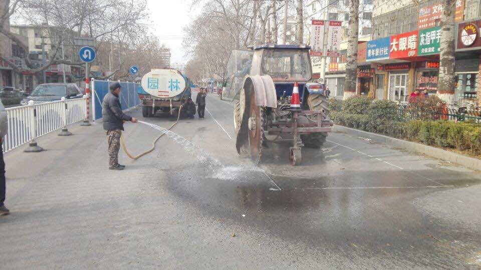 在工地現(xiàn)場,由于切割路面的開槽機(jī)行進(jìn)過程中會(huì)產(chǎn)生大量揚(yáng)塵,工程項(xiàng)目部積極采取多項(xiàng)措施降塵,有效保證了將揚(yáng)塵對周邊市民的影響降至最低。