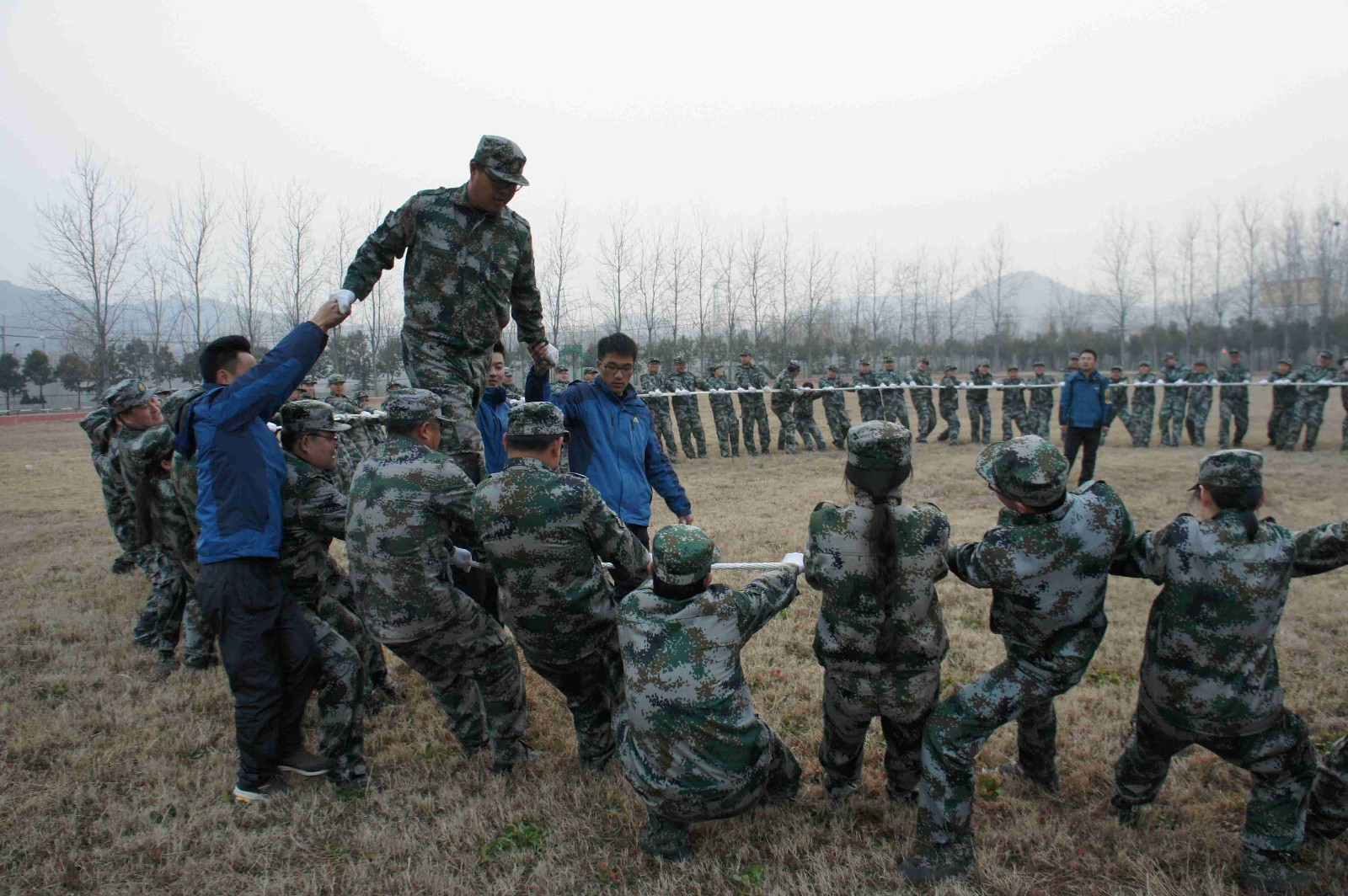 本次軍訓(xùn)拓展活動共分為兩個批次開展,眾人眾拓展訓(xùn)練營配備專業(yè)教練為參訓(xùn)人員安排了包括團隊組建、軍事訓(xùn)練、意志重塑、卓越執(zhí)行、信任責(zé)任、團隊協(xié)作、團隊競技、總結(jié)沉淀與升華等多個訓(xùn)練環(huán)節(jié),涵蓋隊列訓(xùn)練、內(nèi)務(wù)訓(xùn)練、拓展訓(xùn)練、分享總結(jié)等多個訓(xùn)練項目,并將訓(xùn)練項目與現(xiàn)實生活充分融合,逐一進行項目指導(dǎo)。公司董事長、總經(jīng)理趙峰及高管層也作為普通一員,同參訓(xùn)學(xué)員同吃、同住,并一同參加了訓(xùn)練。本期軍事拓展訓(xùn)練中,全體參訓(xùn)人員一起完成了真人CS、電網(wǎng)、空單、激情動力圈、畢業(yè)墻,一個又一個極具挑戰(zhàn)性的項目,期間,為紀念紅軍長征勝利70周年,還進行了一次徒步10余公里山路的重走長征路活動。這些活動鍛煉了大家的集體向心力和凝聚力。