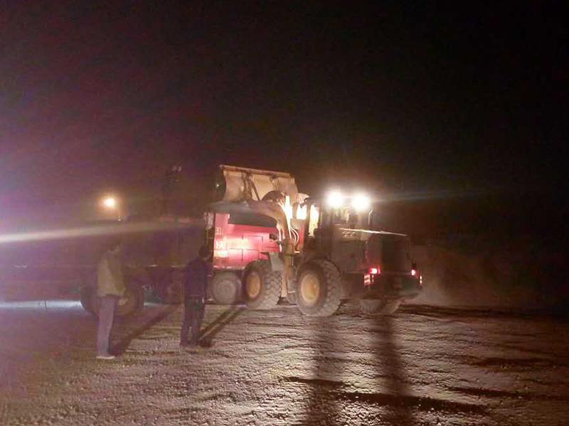 場內(nèi)忙而不亂,場外各司其職。根據(jù)市文體中心項目進(jìn)度安排,有些水穩(wěn)及瀝青鋪設(shè)工序要安排在夜間或凌晨實施。為了保證工序順利實施,機(jī)械公司根據(jù)項目進(jìn)度安排提前組織生產(chǎn)路面材料,有時一干就是連軸轉(zhuǎn)的幾天幾夜,保證路面材料24小時隨時足量供應(yīng)到施工現(xiàn)場;為了保證工程質(zhì)量標(biāo)準(zhǔn)嚴(yán)格符合要求,實驗室根據(jù)施工內(nèi)容分派人員進(jìn)入路面材料生產(chǎn)一線和材料鋪裝一線,隨時按要求對材料的生產(chǎn)、運輸、鋪裝、壓實等各個環(huán)節(jié)進(jìn)行質(zhì)量跟蹤檢測。